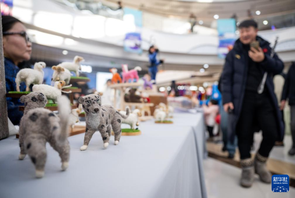 12月20日拍摄的在活动中展出的蒙古国毛绣手工艺品。