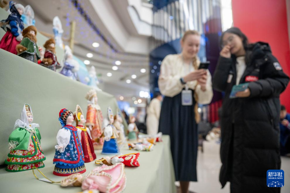 12月20日,一名市民在活动中了解俄罗斯手工艺品。