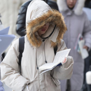 12月20日,考生在哈尔滨理工大学考点外复习。