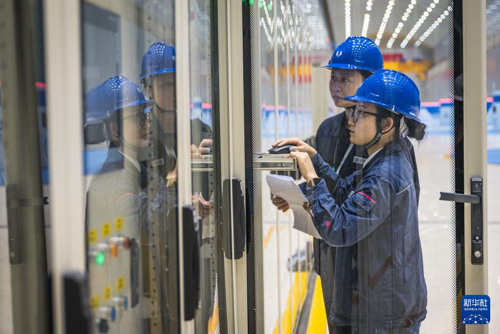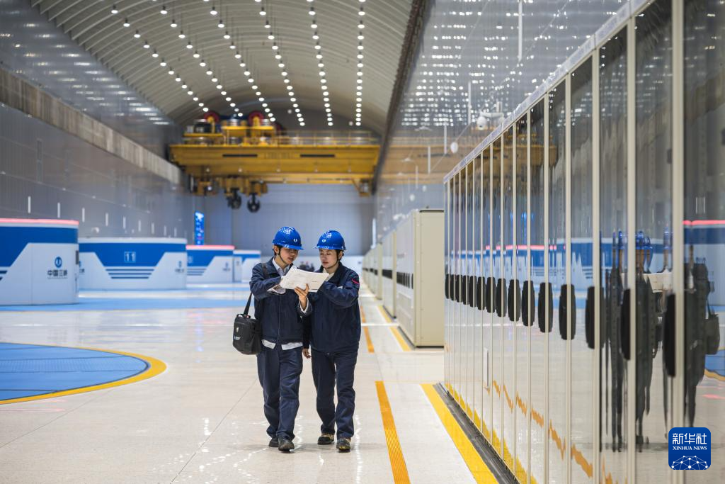 12月19日,工作人员在白鹤滩水电站开展日常巡检工作。