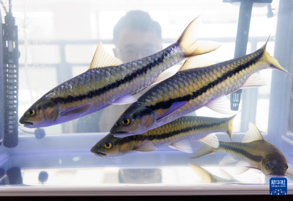 这是发布会现场展示的软鳍新光唇鱼“墨龙1号”(12月22日摄)。