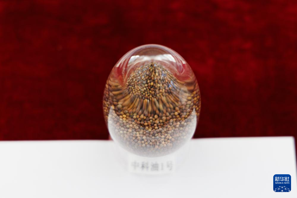 这是发布会现场展示的中科油1号油菜籽(12月22日摄)。