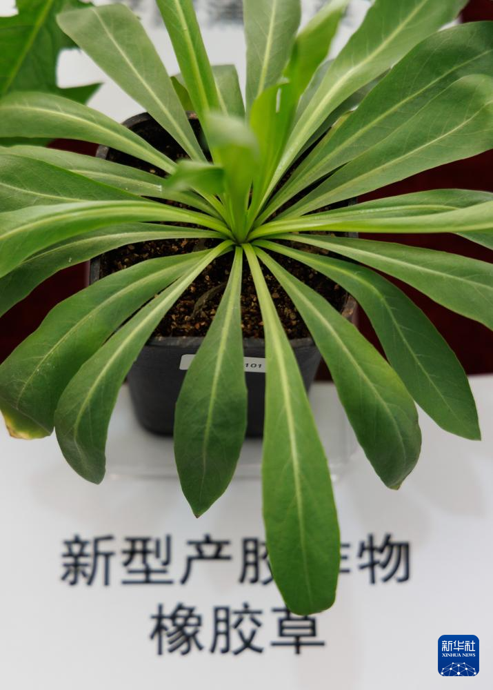 这是发布会现场展示的新型产胶作物橡胶草(12月22日摄)。