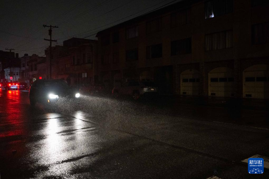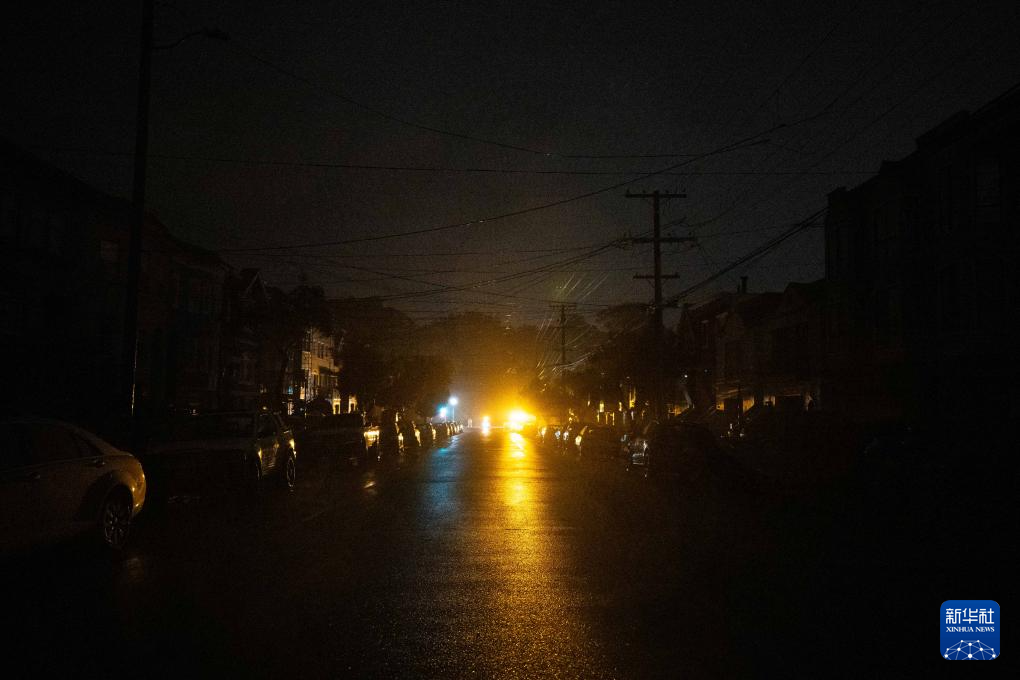 这是12月21日在美国加利福尼亚州旧金山市拍摄的受停电影响的街区。