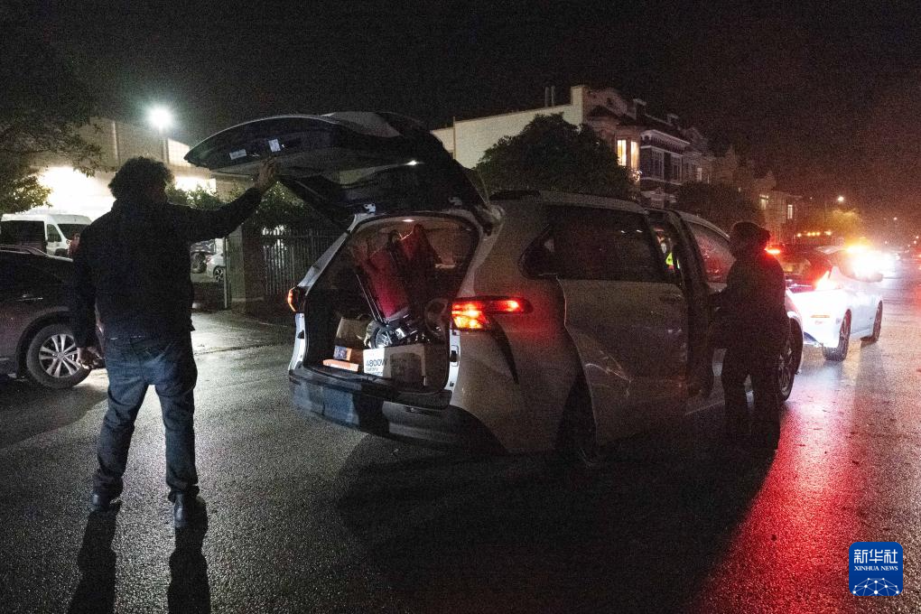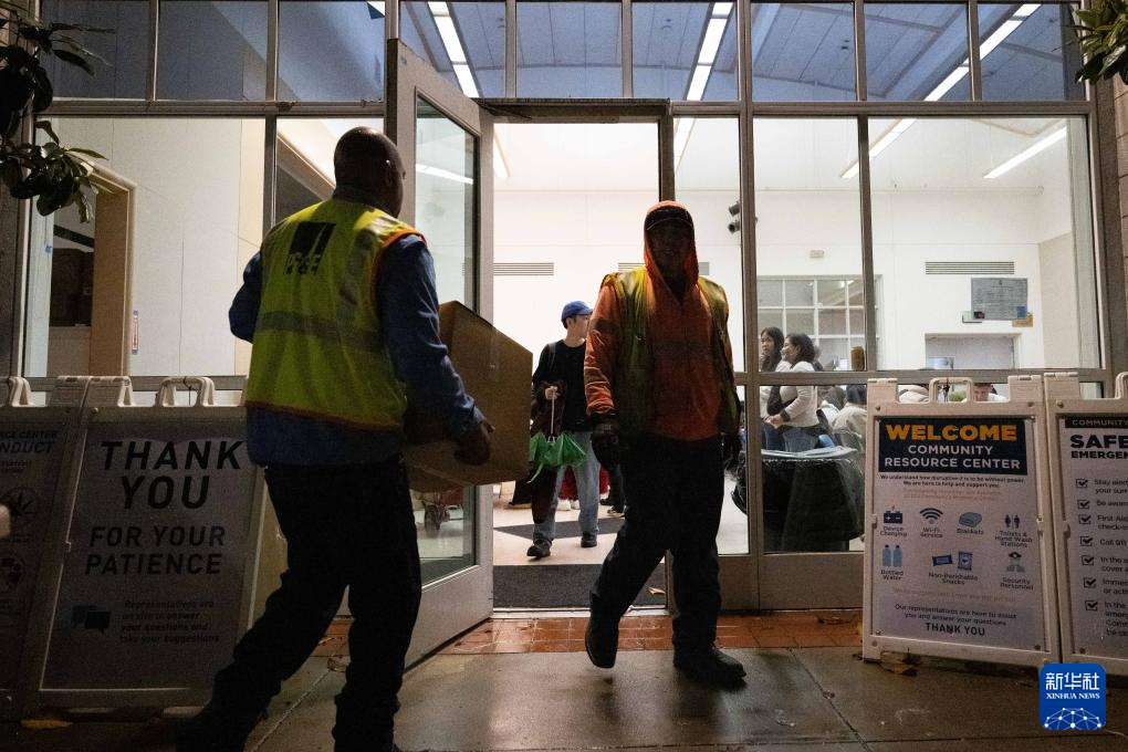12月21日,在美国加利福尼亚州旧金山市,人们在一家社区资源中心领取物资。