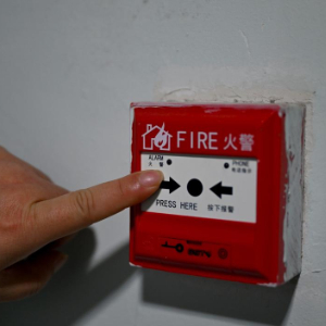 在河南某市一小区内,火警报警器已损坏,无法正常使用(12月16日摄)。