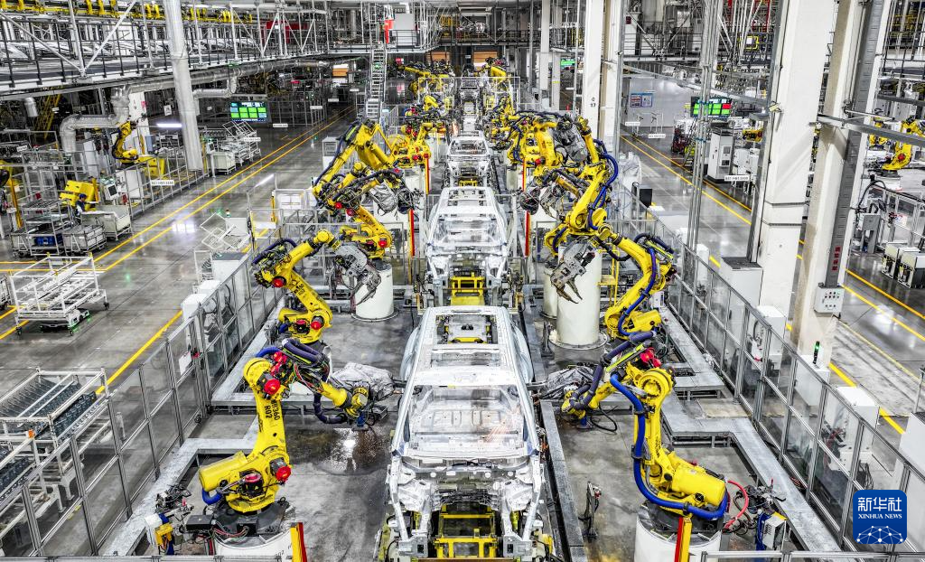 9月19日在位于重庆市两江新区的赛力斯汽车超级工厂拍摄的自动化生产作业现场。