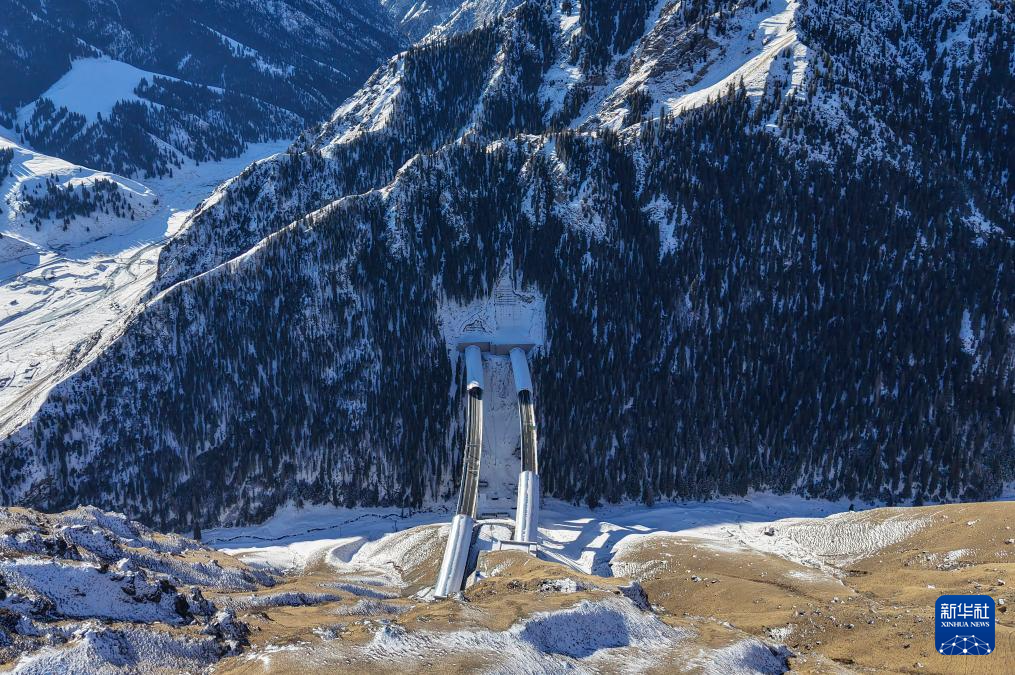 新疆乌尉高速公路蜿蜒在天山中(12月23日摄,无人机照片)。