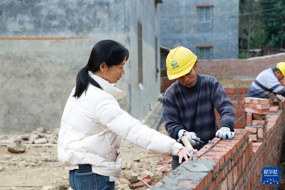 12月25日,中和村党支部书记刘名芳(左)查看村里新修设施的进展情况。