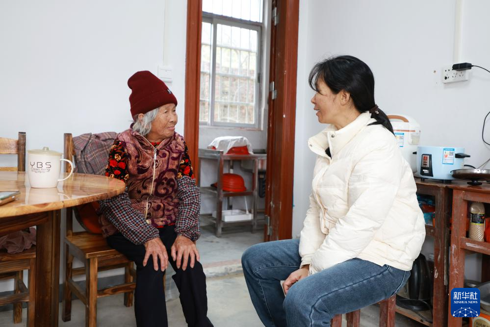 12月25日,中和村党支部书记刘名芳与临时安置点居住的老人交谈。