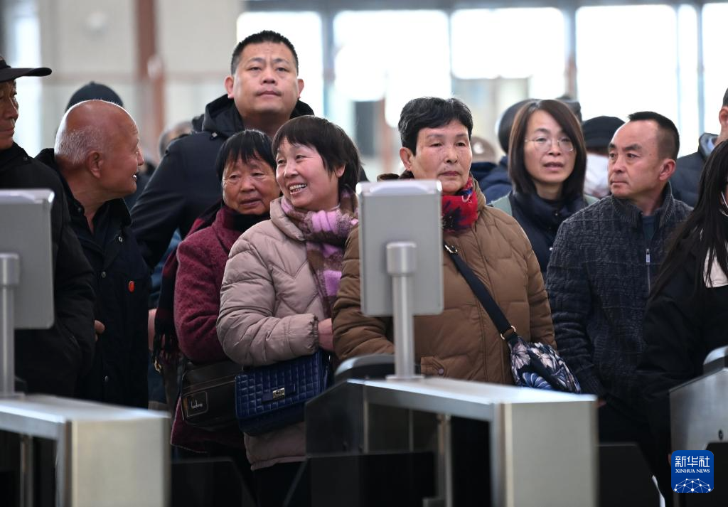 12月26日,乘客在西安北站排队进站,准备登上西安开往延安的西延高铁C9312次首发列车。