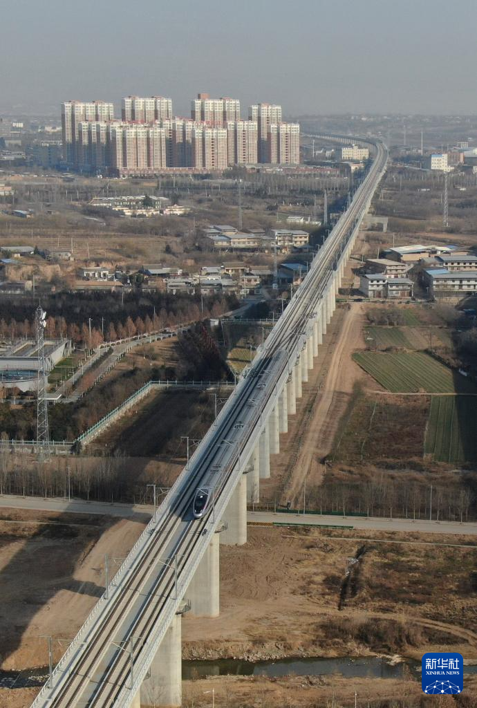 12月26日,西安开往延安的西延高铁首发C9312次列车驶入富平南站。