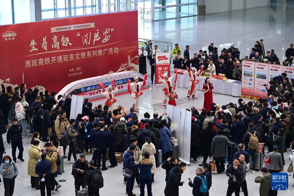 12月26日,演员在西安北站西延高铁开通延安文旅系列推广活动上表演。