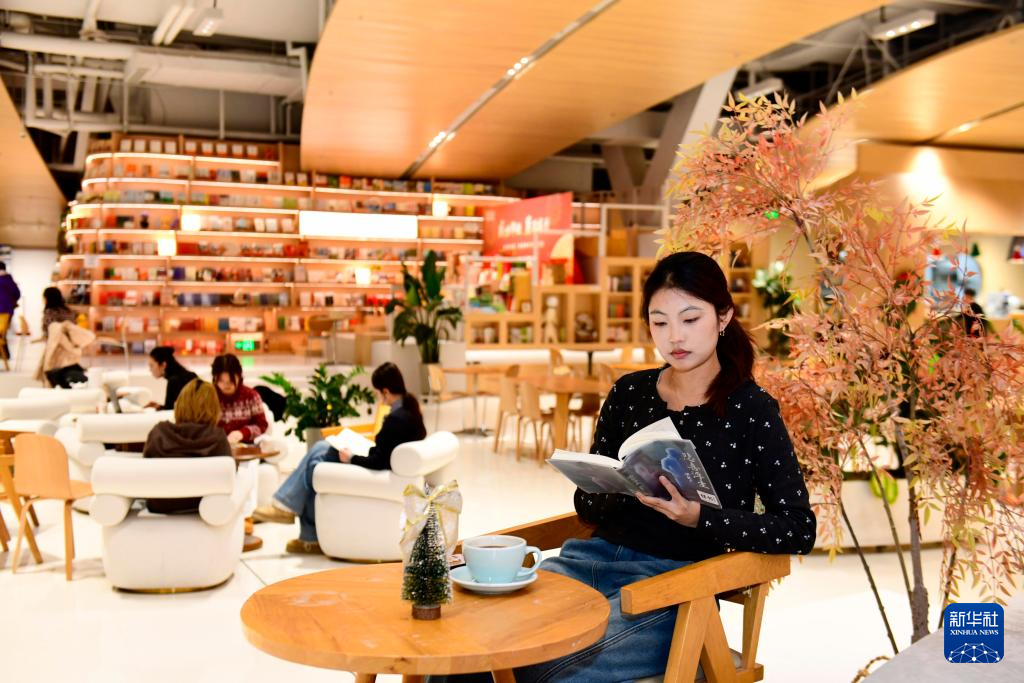 12月25日,在威海市新华书店“至海空间”,市民在看书。
