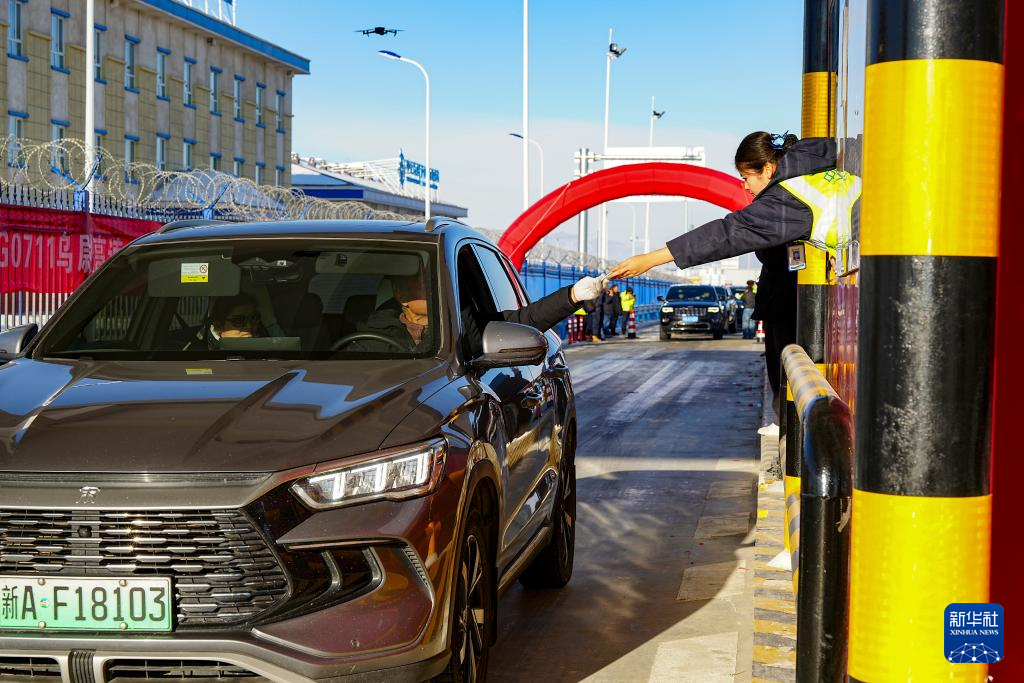 12月26日,车辆通过位于乌鲁木齐县的永丰收费站驶入乌尉高速公路,吸引媒体工作人员关注。