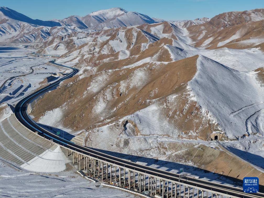 12月26日拍摄的新疆乌尉高速公路天山胜利隧道口(无人机照片)。