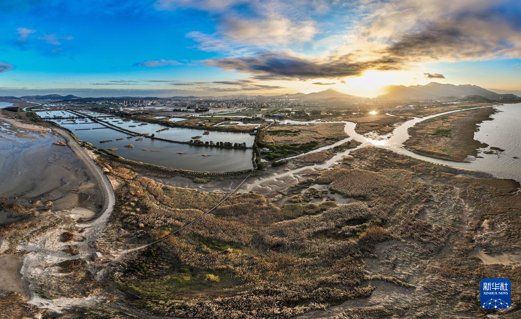 这是12月27日拍摄的闽江河口湿地国家级自然保护区核心区鳝鱼滩全景(无人机照片)。
