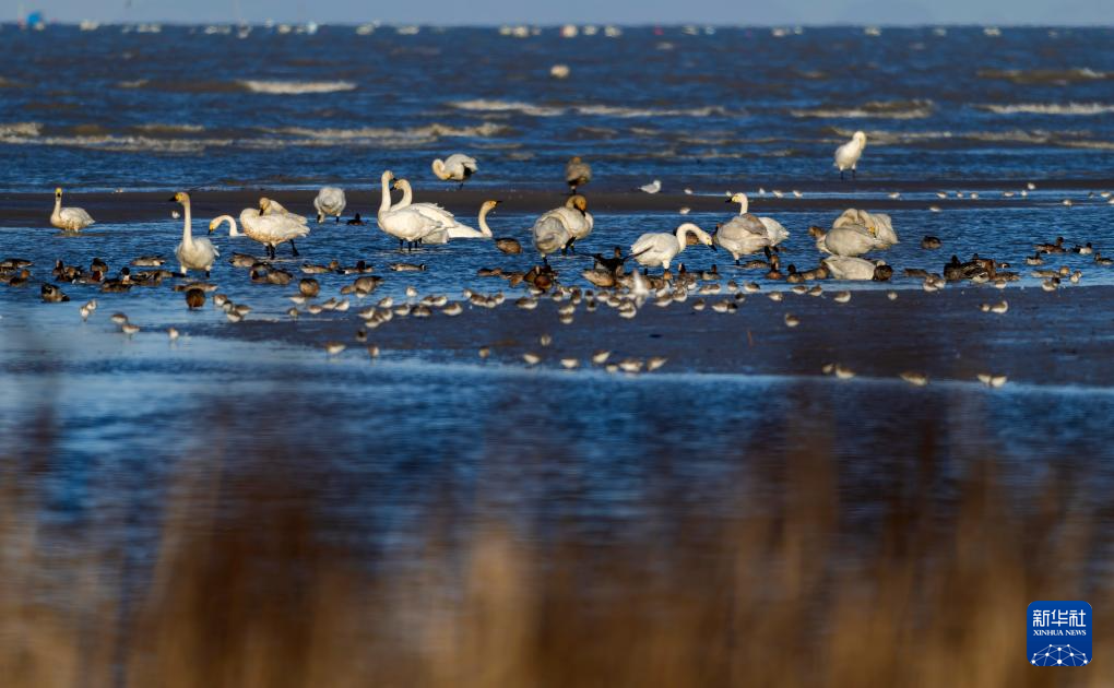 福州闽江河口湿地是东亚-澳大利西亚候鸟迁徙的重要驿站。每年冬季,这里迎来众多小天鹅,它们常聚集在湿地滩涂停歇觅食,或在湿地上空组队翱翔,形成壮观“白色鸟浪”。