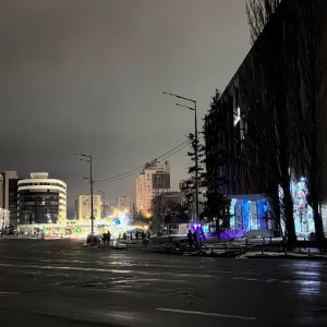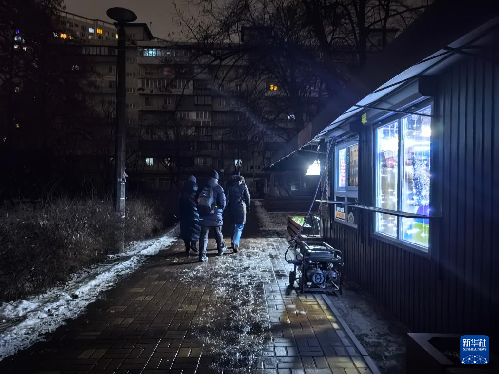 这是12月27日拍摄的停电期间的乌克兰基辅市第聂伯区街道。