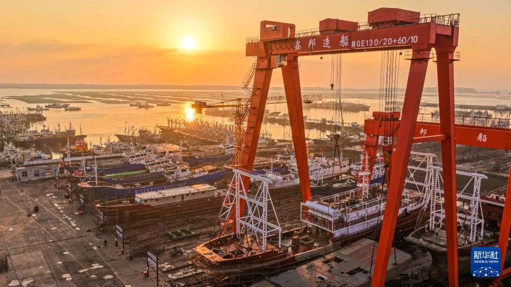 12月25日,在山东省荣成市一家造船企业,船舶建造与维修作业有序进行(无人机照片)。
