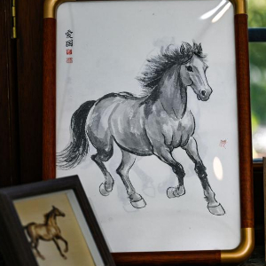 这是12月29日在天津古文化街“喜迎马年,五代画马人马画艺术展”上拍摄的画作。