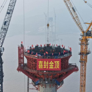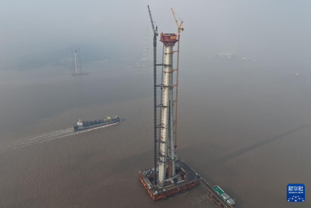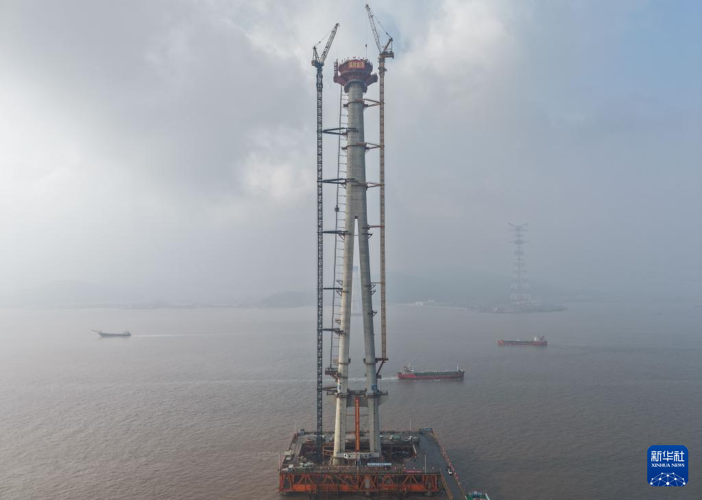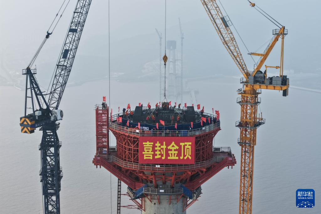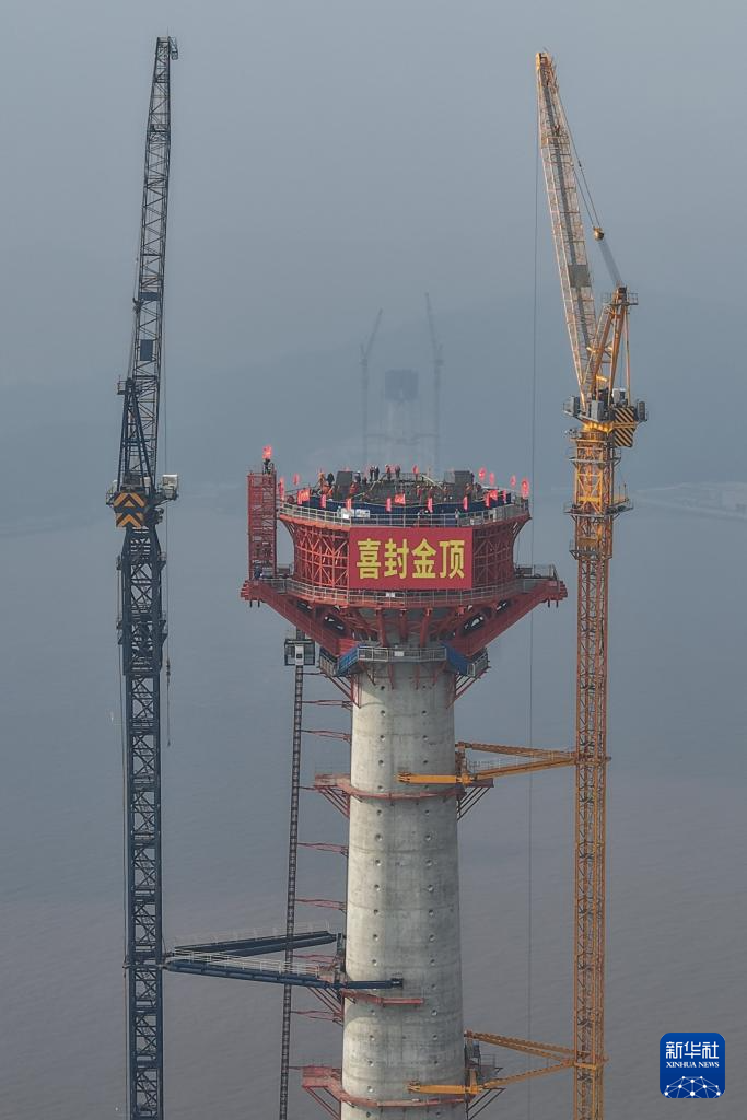 12月30日,由中铁大桥局承建的甬舟铁路西堠门公铁两用大桥5号主塔封顶。这也是甬舟铁路全线首座封顶的桥梁主塔。294米高的主塔,大约相当于100层楼房的高度,刷新了世界海中桥梁主塔高度的纪录。