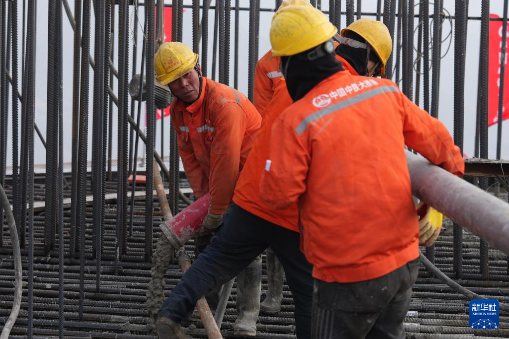 12月30日,建设者在甬舟铁路西堠门公铁两用大桥5号主塔封顶现场作业。