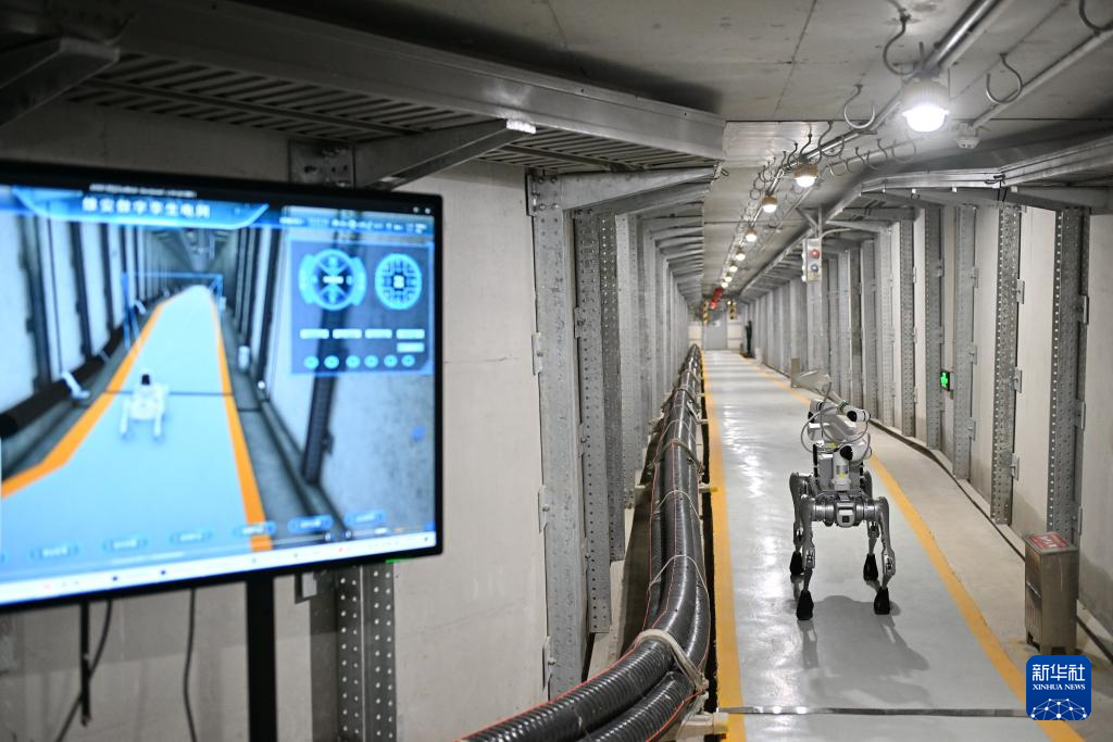 2025年4月15日,四足巡检机器人在雄安新区雄东电缆隧道内巡检。