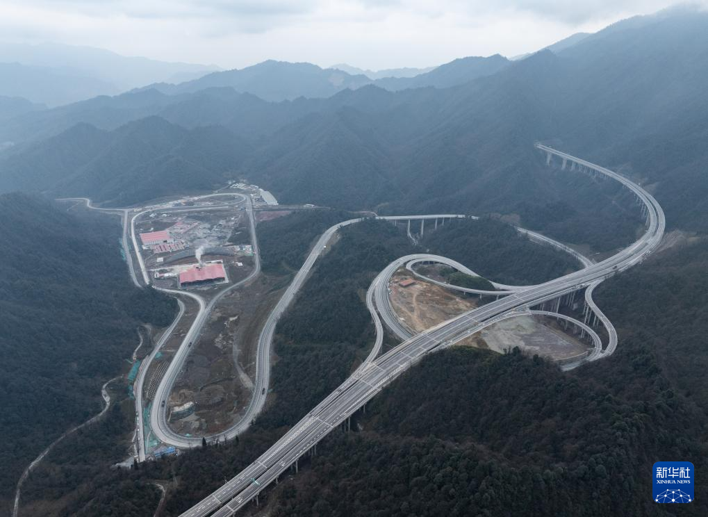 12月26日拍摄的乐西高速大风顶枢纽和大风顶服务区(无人机照片)。