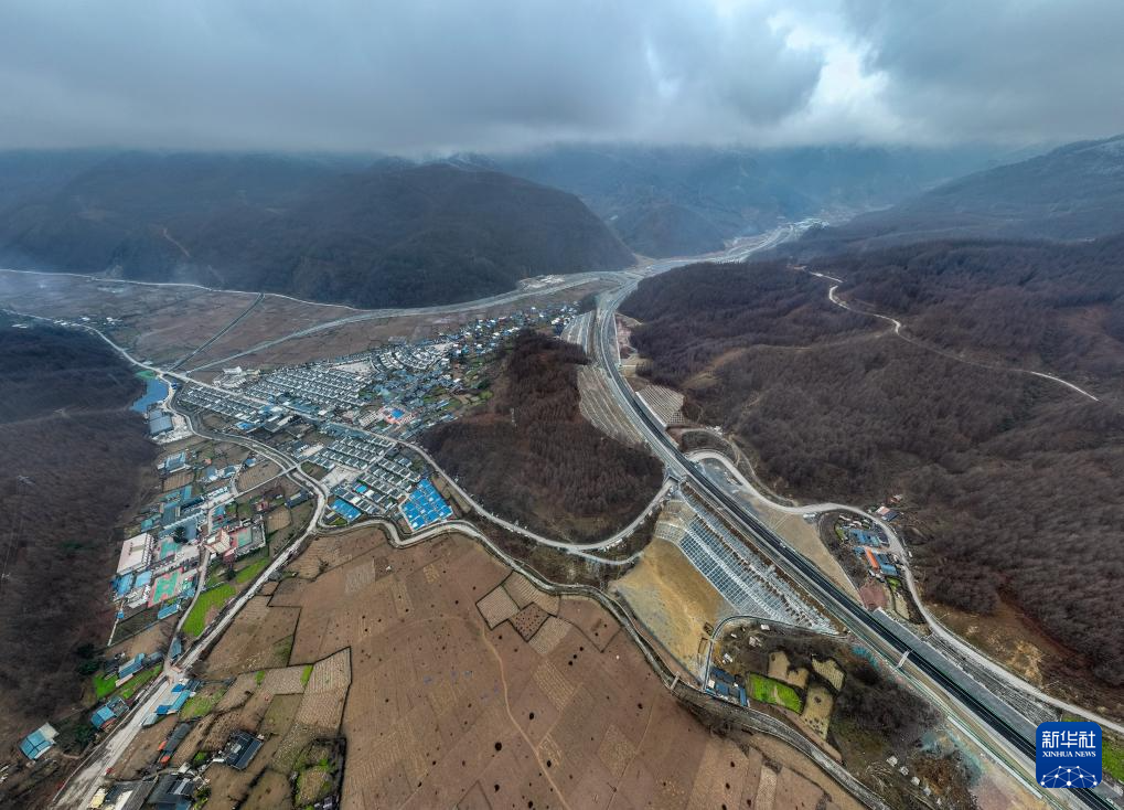 12月26日拍摄的乐西高速昭觉县城出口(无人机照片)。