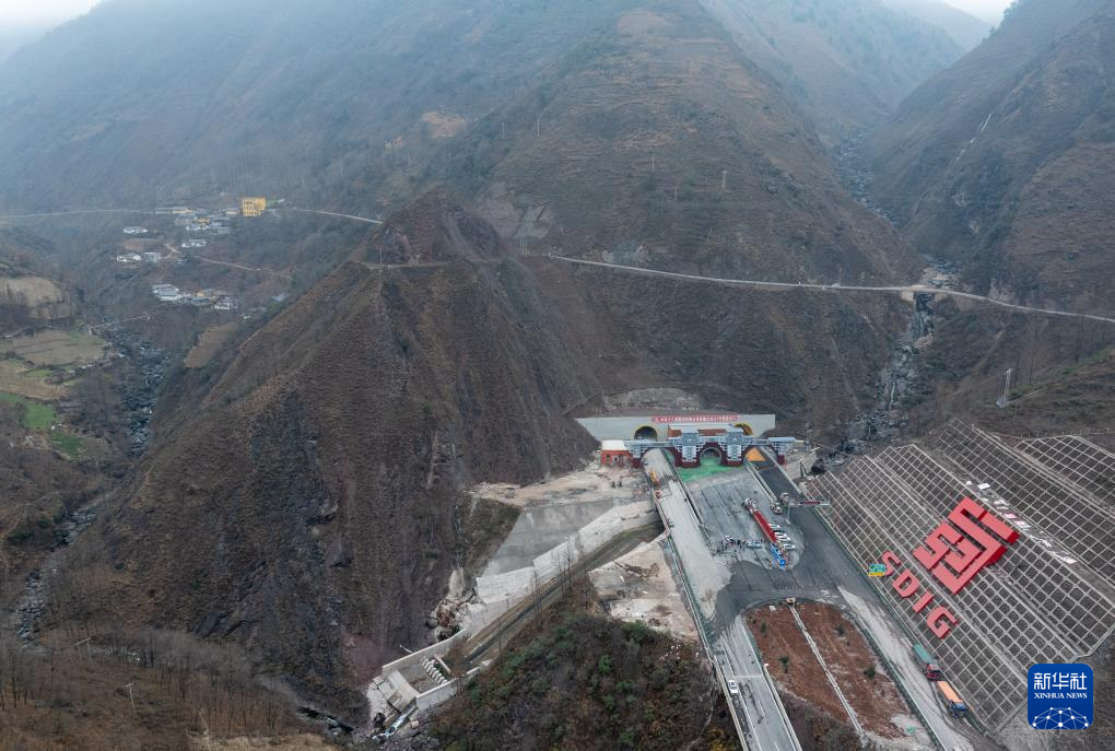 12月27日拍摄的乐西高速大凉山1号隧道口。该隧道使用“平导TBM+主洞钻爆法”组合施工工艺(无人机照片)。