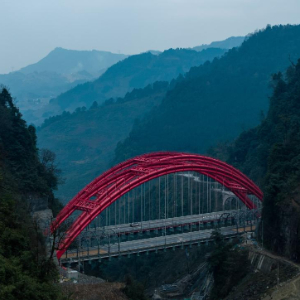 12月27日拍摄的乐西高速五彝湾大桥,它连接五彝湾隧道(左)和田家山隧道(无人机照片)。