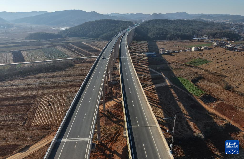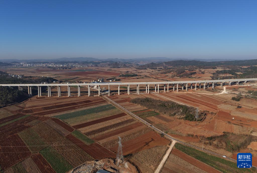 12月31日在云南省曲靖市拍摄的宣富高速公路(无人机照片)。