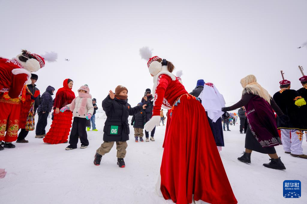 2026年1月1日,在新疆昭苏县湿地公园,演员表演非遗节目。