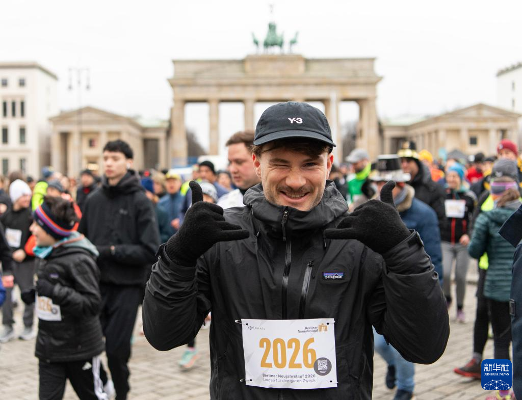 2026年1月1日,人们在德国首都柏林的勃兰登堡门附近参加新年跑活动。