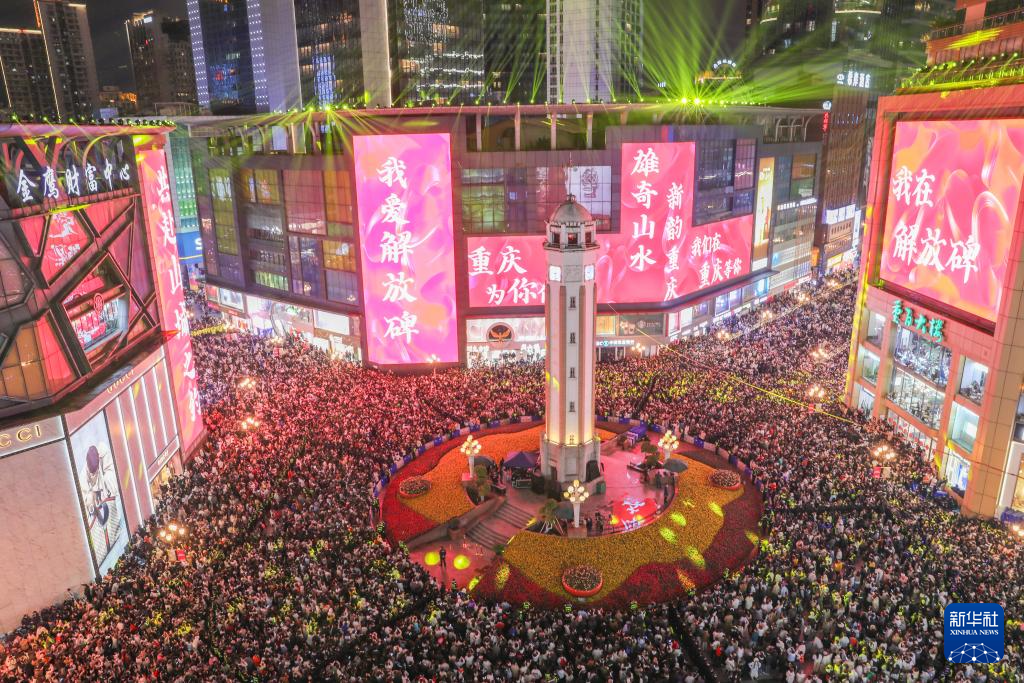 2025年12月31日晚,人们聚集在重庆市渝中区解放碑商圈迎接新年到来。
