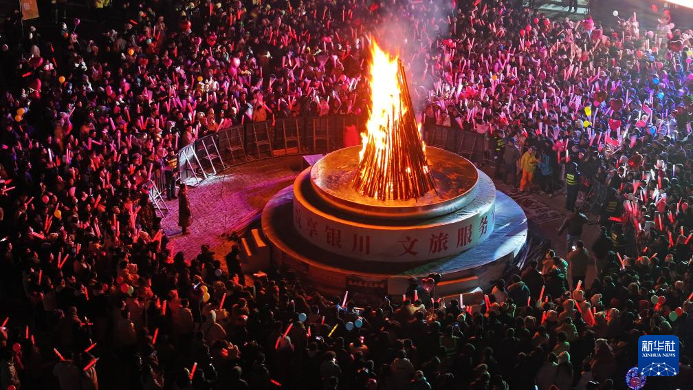 2025年12月31日晚,人们在银川文旅集团览山公园参与跨年活动(无人机照片)。