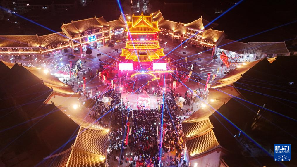2026年1月1日凌晨在天津市西青区杨柳青古镇拍摄的2026“津夜有约”跨年活动现场。