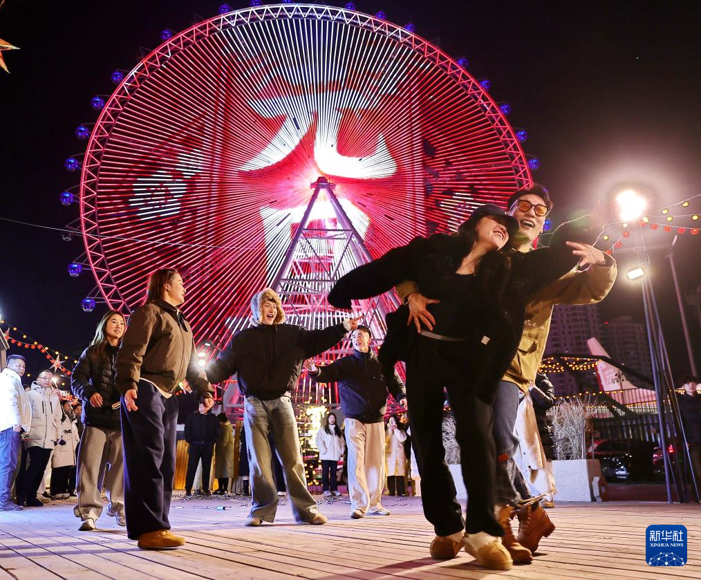 2026年1月1日凌晨,游客在河北省秦皇岛市海港区的摩天轮前跳舞,迎接新年的到来。