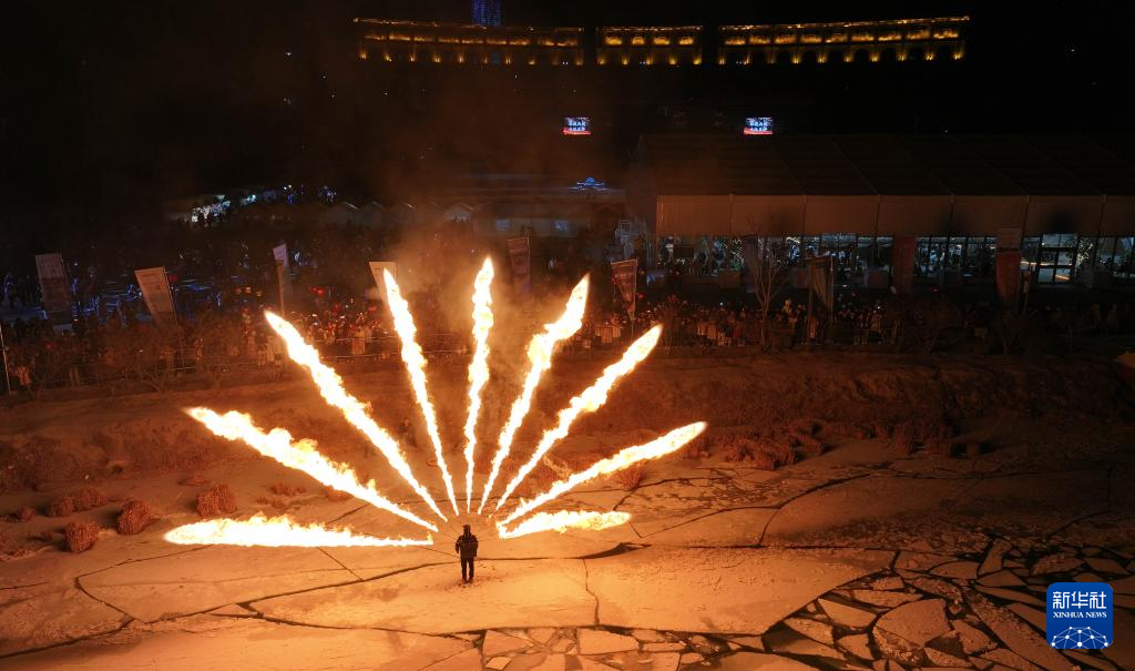2025年12月31日晚,人们在甘肃省张掖市甘州府城参加迎新年活动(无人机照片)。