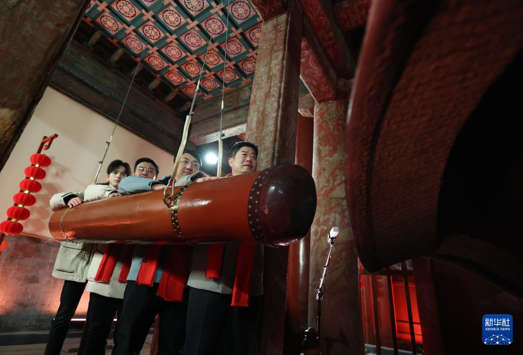 2026年1月1日凌晨,来自北京多个行业的代表在北京大钟寺古钟博物馆敲响永乐大钟,迎接新年。