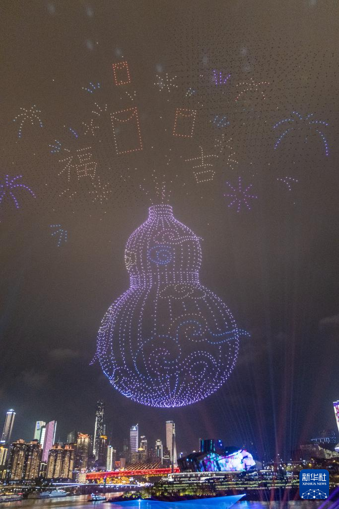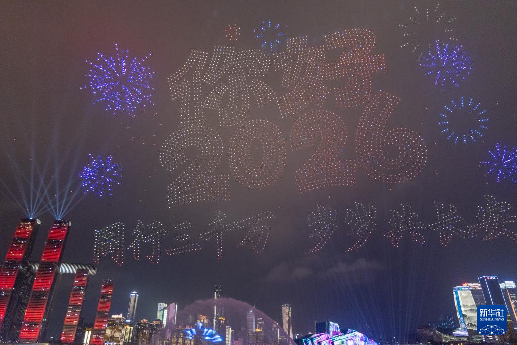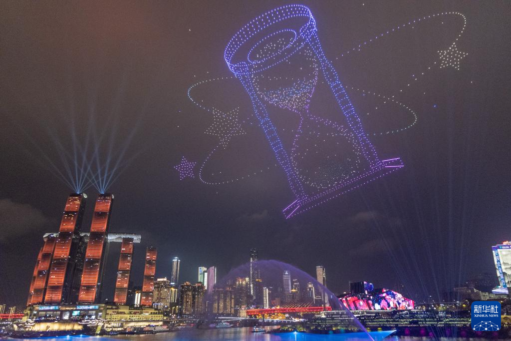 这是2025年12月31日晚在重庆市南岸区拍摄的重庆无人机灯光秀跨年夜展演活动。