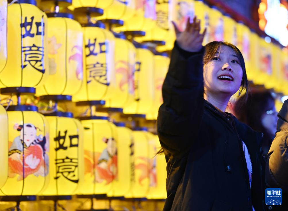 2025年12月31日晚,游人在天津市西青区杨柳青古镇游玩。