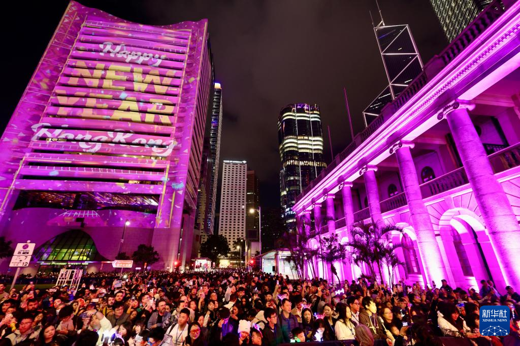 2026年1月1日,人们在香港中环参加由香港旅发局举行的跨年倒数活动。