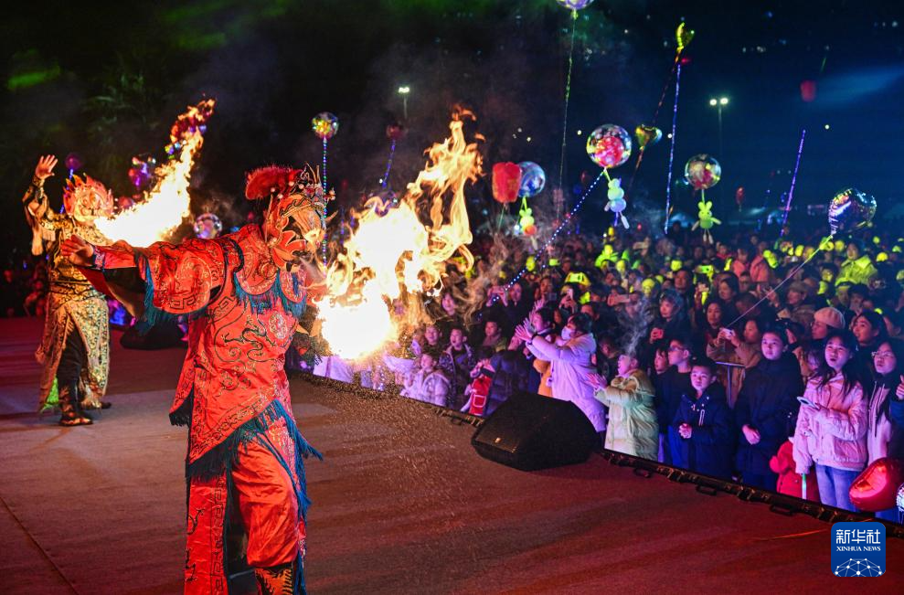 2025年12月31日晚,人们在四川省泸州市龙马潭区沱江北滨公园观看表演,迎接新年。