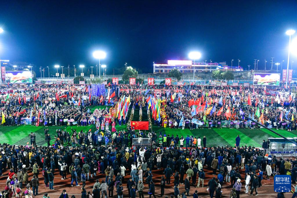 这是1月2日拍摄的第四届贵州“村超”开幕式现场。