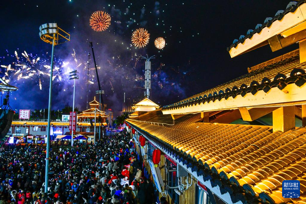 1月2日,人们在活动现场观看烟花表演(无人机照片)。