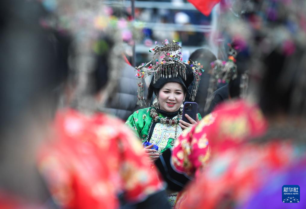 1月2日,侗族群众在第四届贵州“村超”开幕式现场。