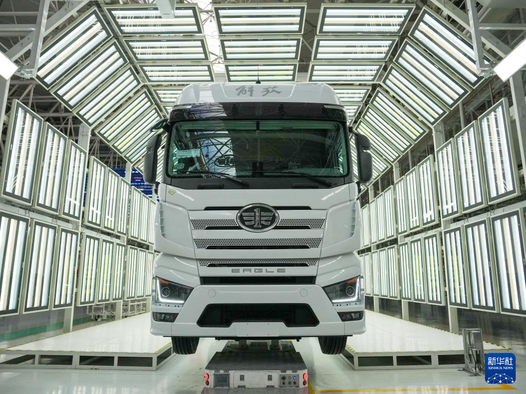 1月4日,在一汽解放J7整车智能工厂,车辆等待下线。