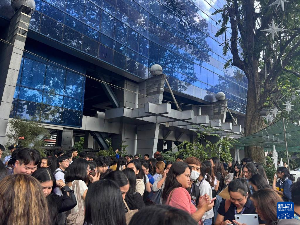 1月7日,在菲律宾南部达沃市一所学校,人们从建筑中撤离至空旷地区。